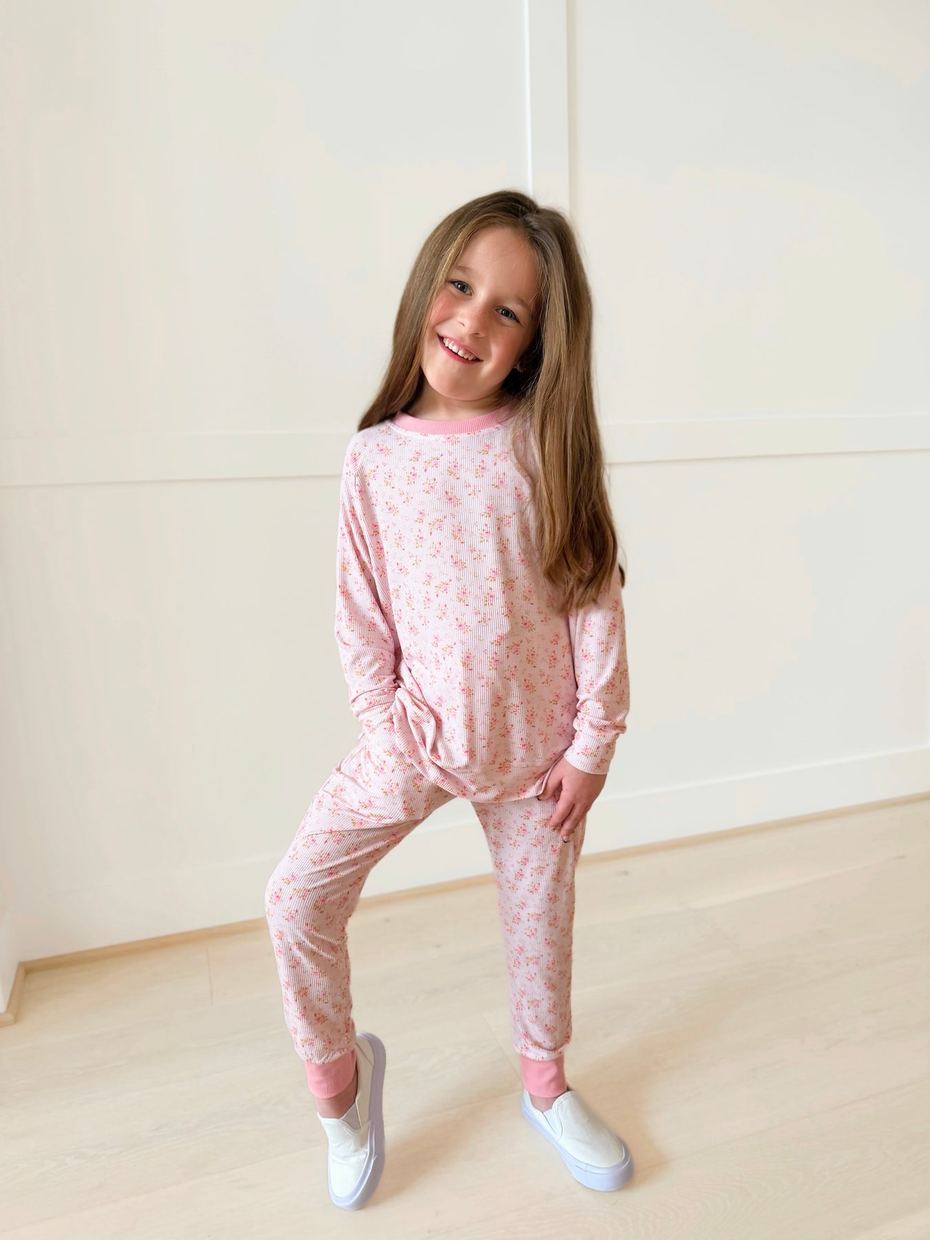 Bamboo RIBBED BLUSH IN BLOOMS kids crewneck & JOGGER SET