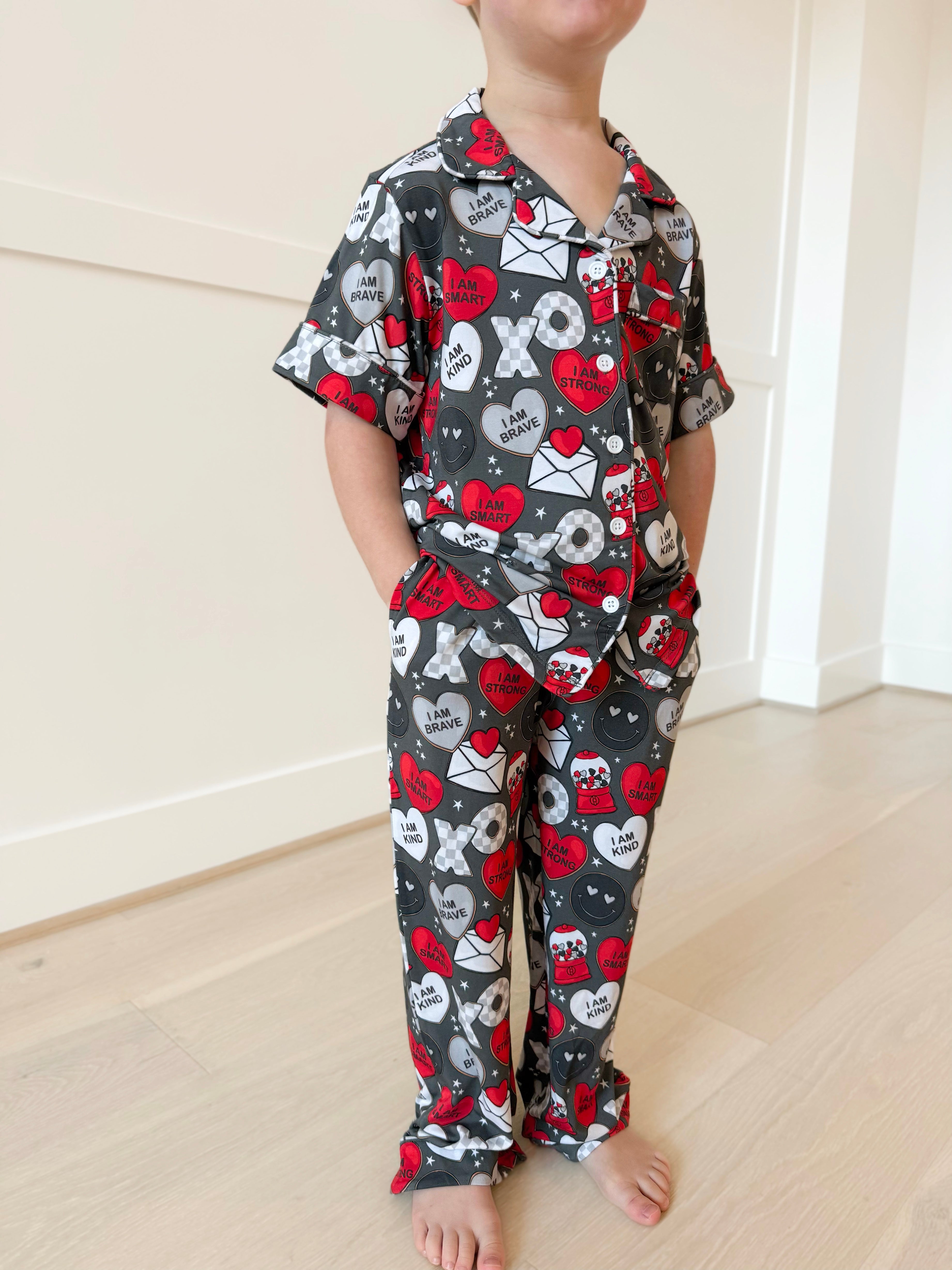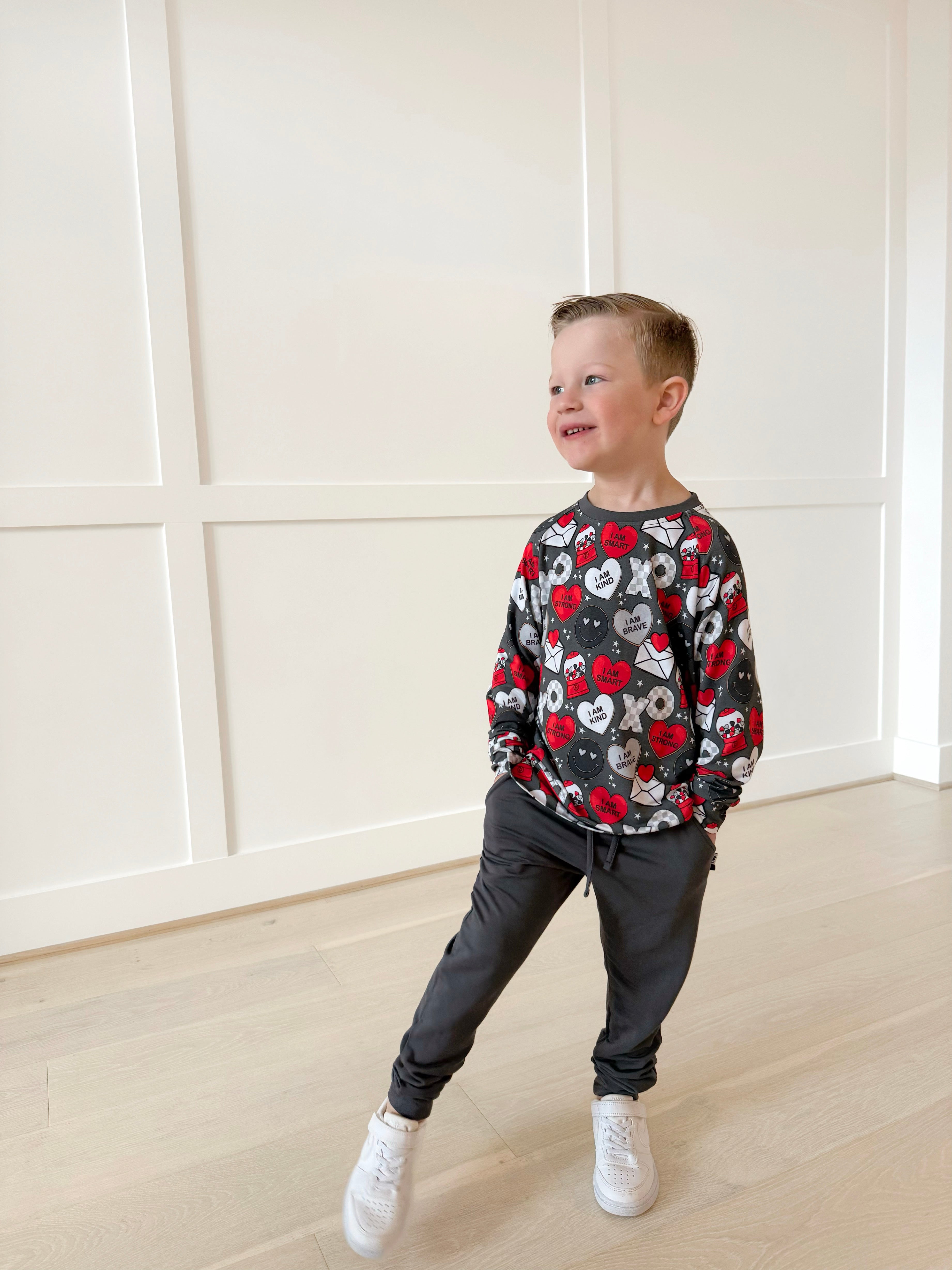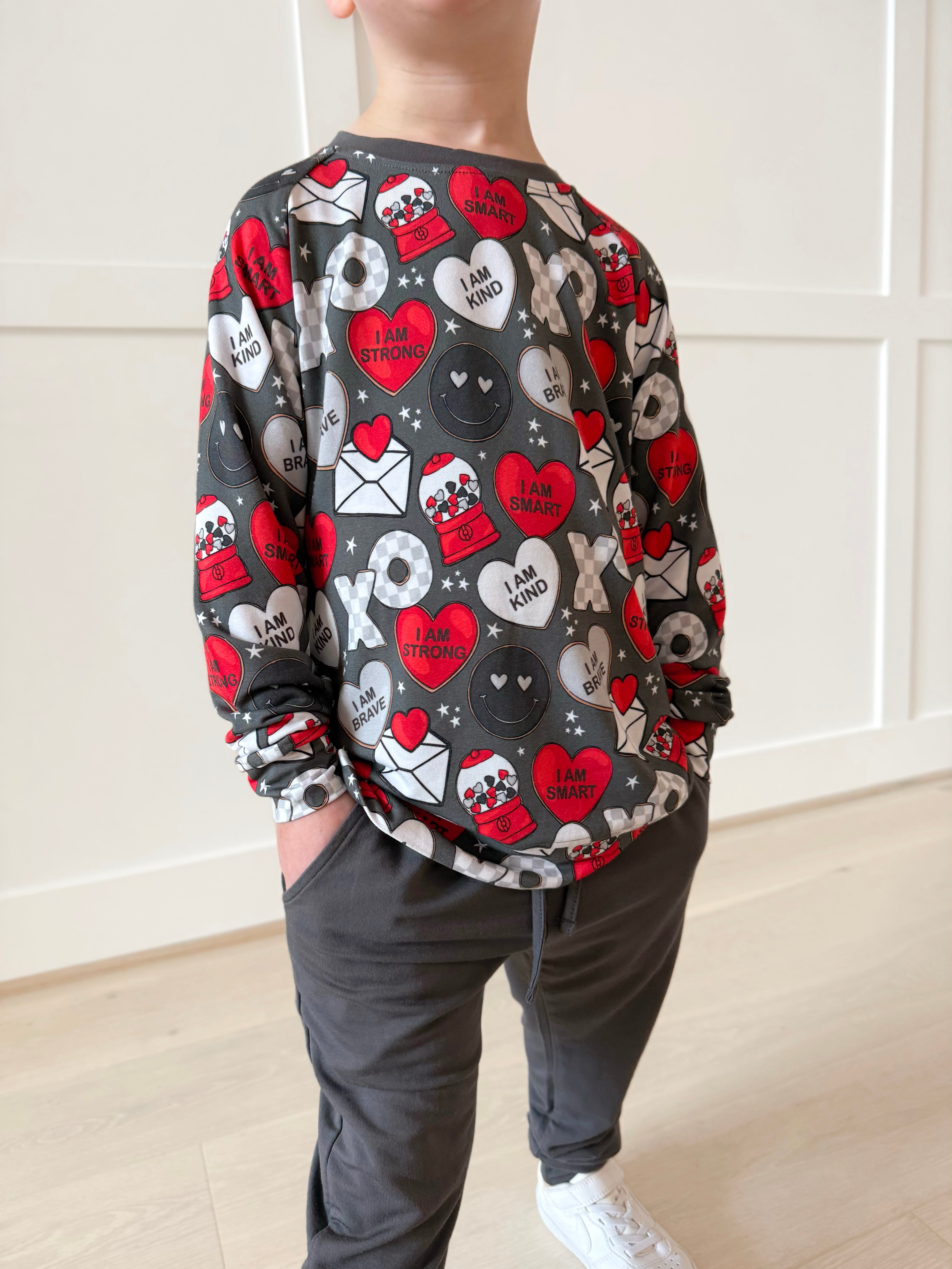 BAMBOO French Terry LOVE NOTES FOR HIM 2.0 COORDINATING DARK CHARCOAL KIDS JOGGERS