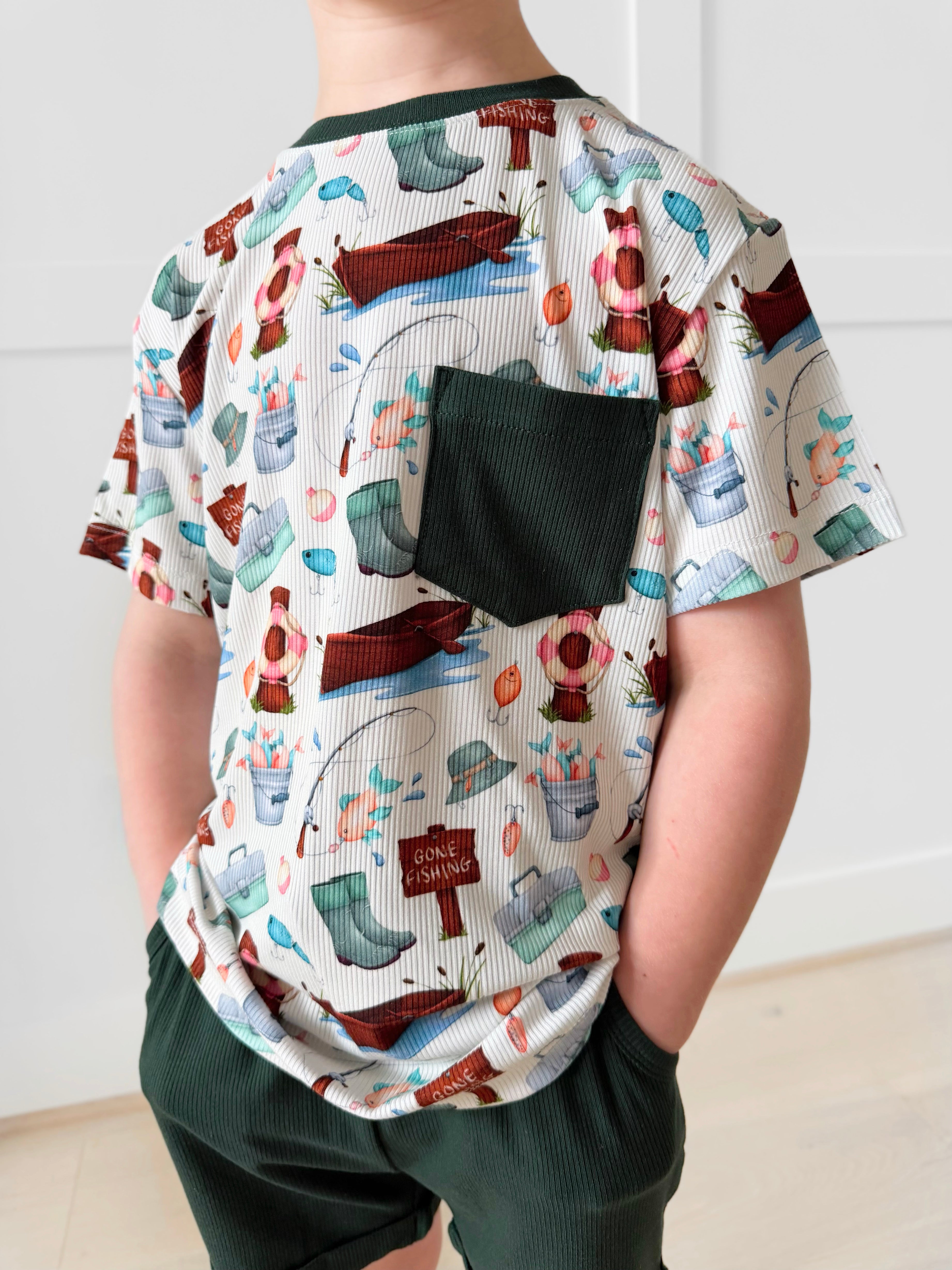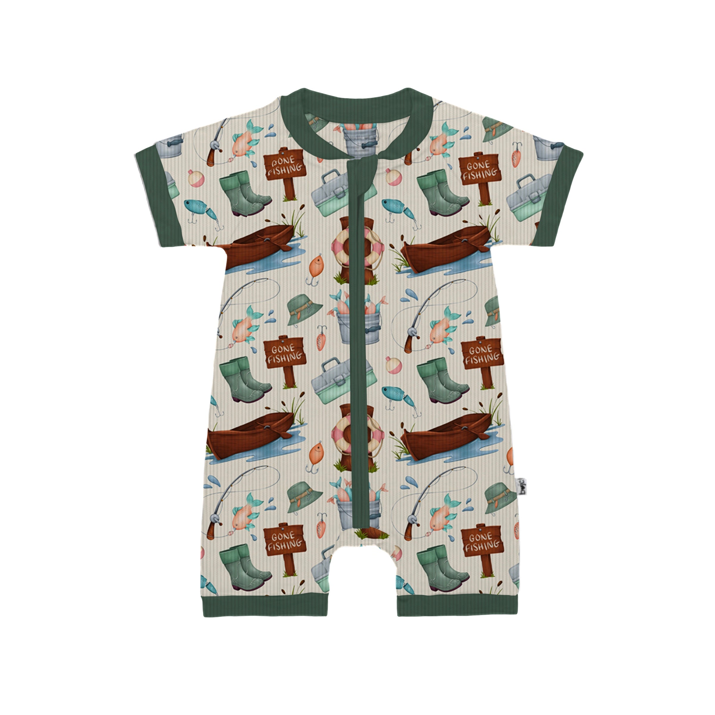 Bamboo RIBBED GONE FISHING Two Piece SHORT SLEEVE/SHORT Set