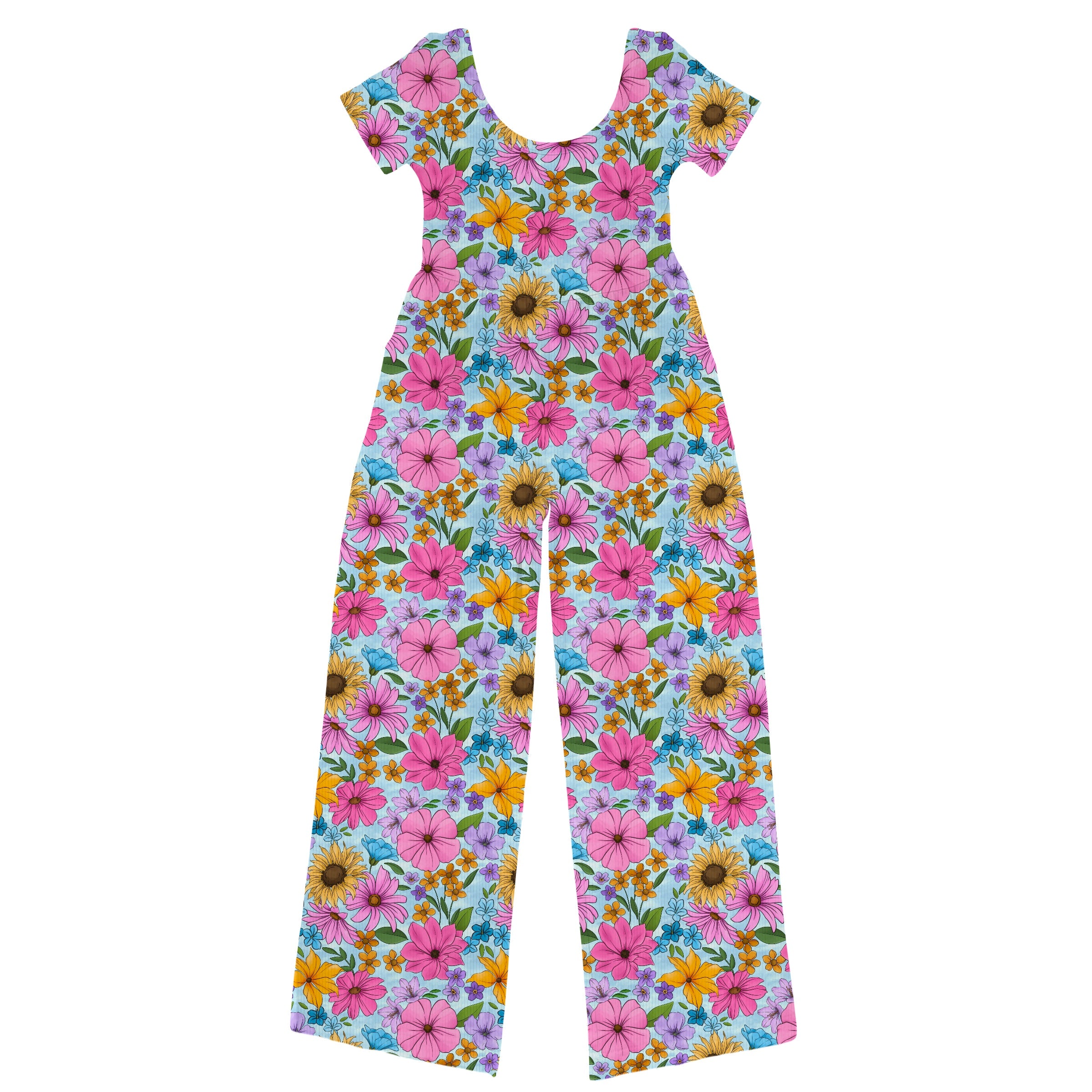 Bamboo RIBBED LET IT BLOOM Women’s SHORT SLEEVE FULL LENGTH ROMPER