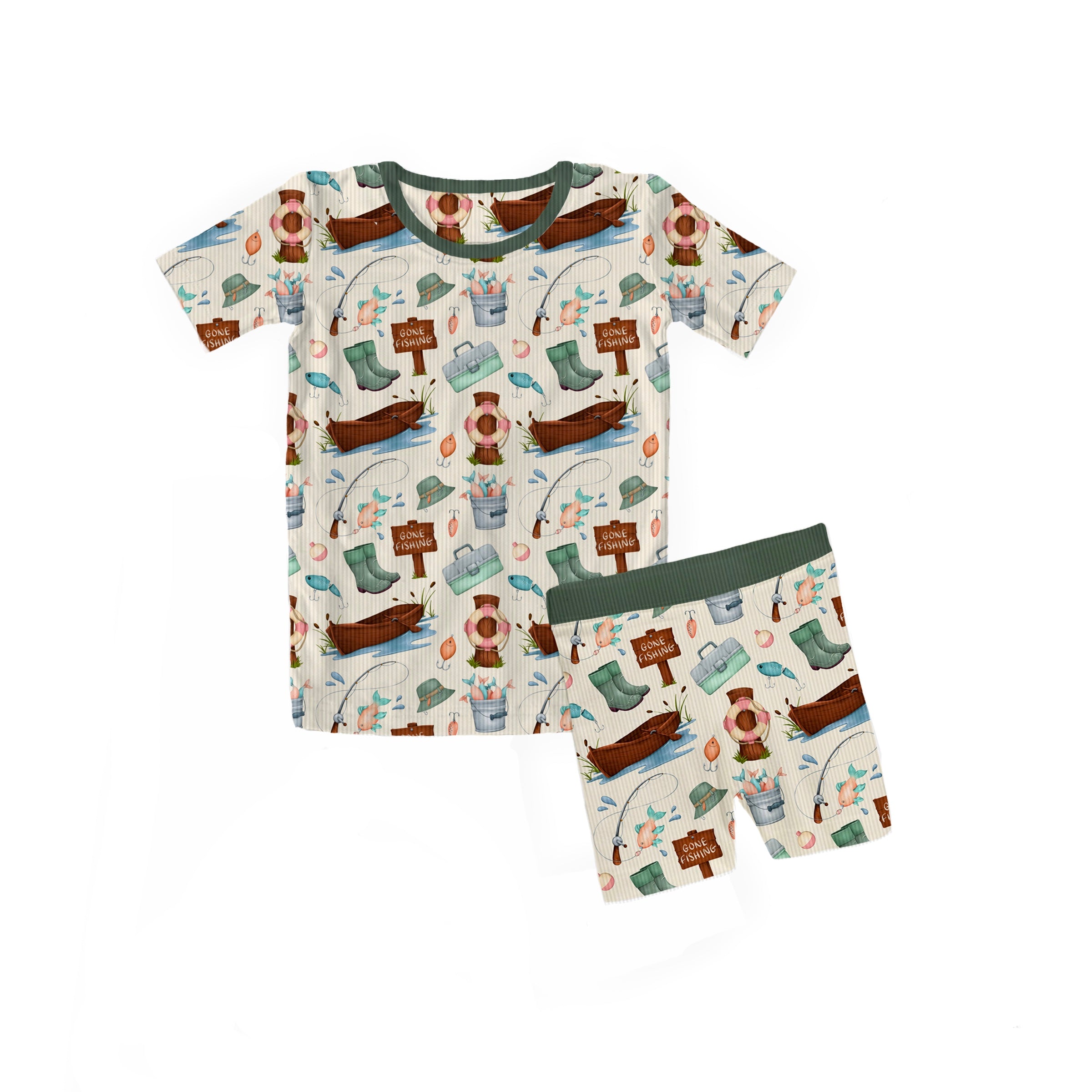 Bamboo RIBBED GONE FISHING Two Piece SHORT SLEEVE/SHORT Set
